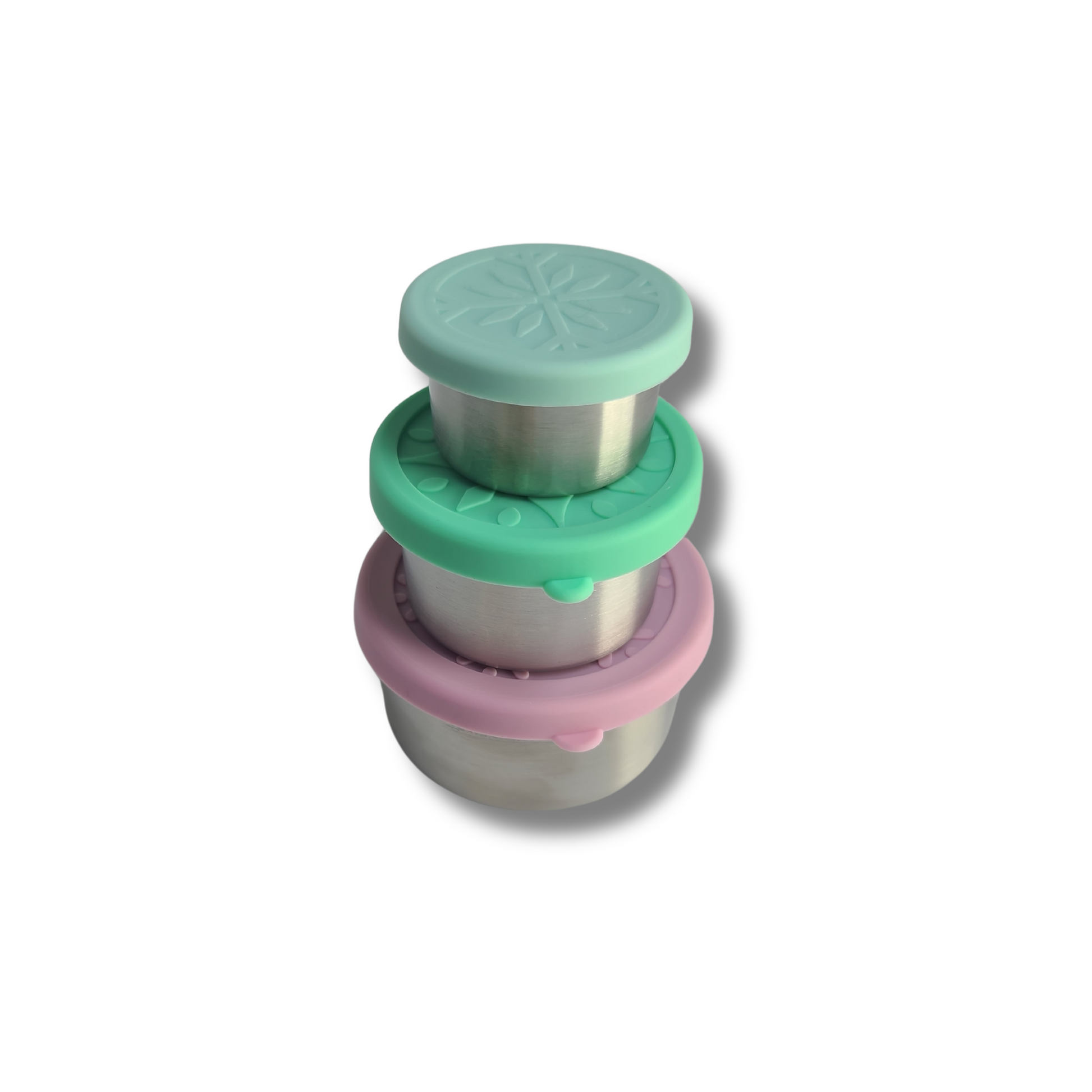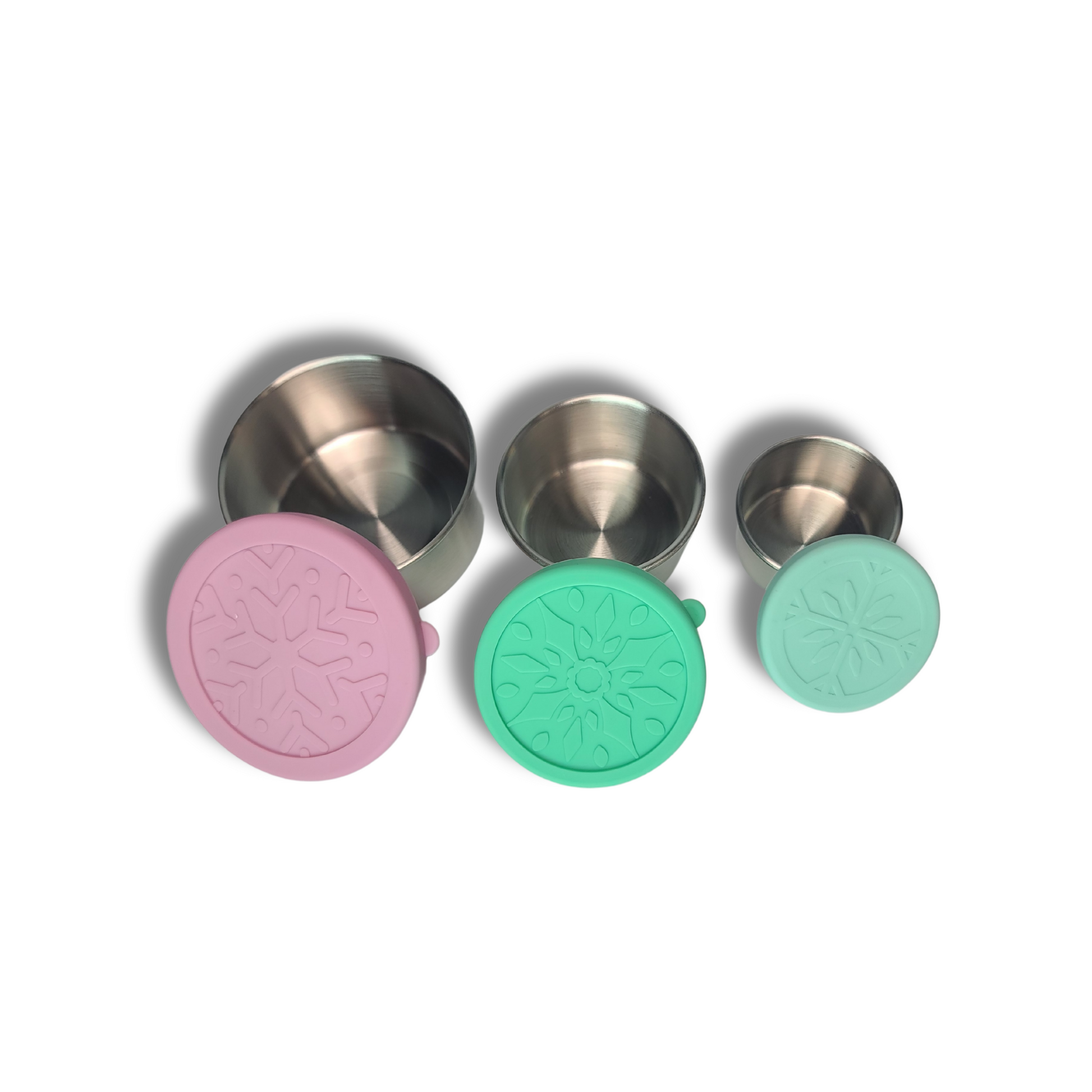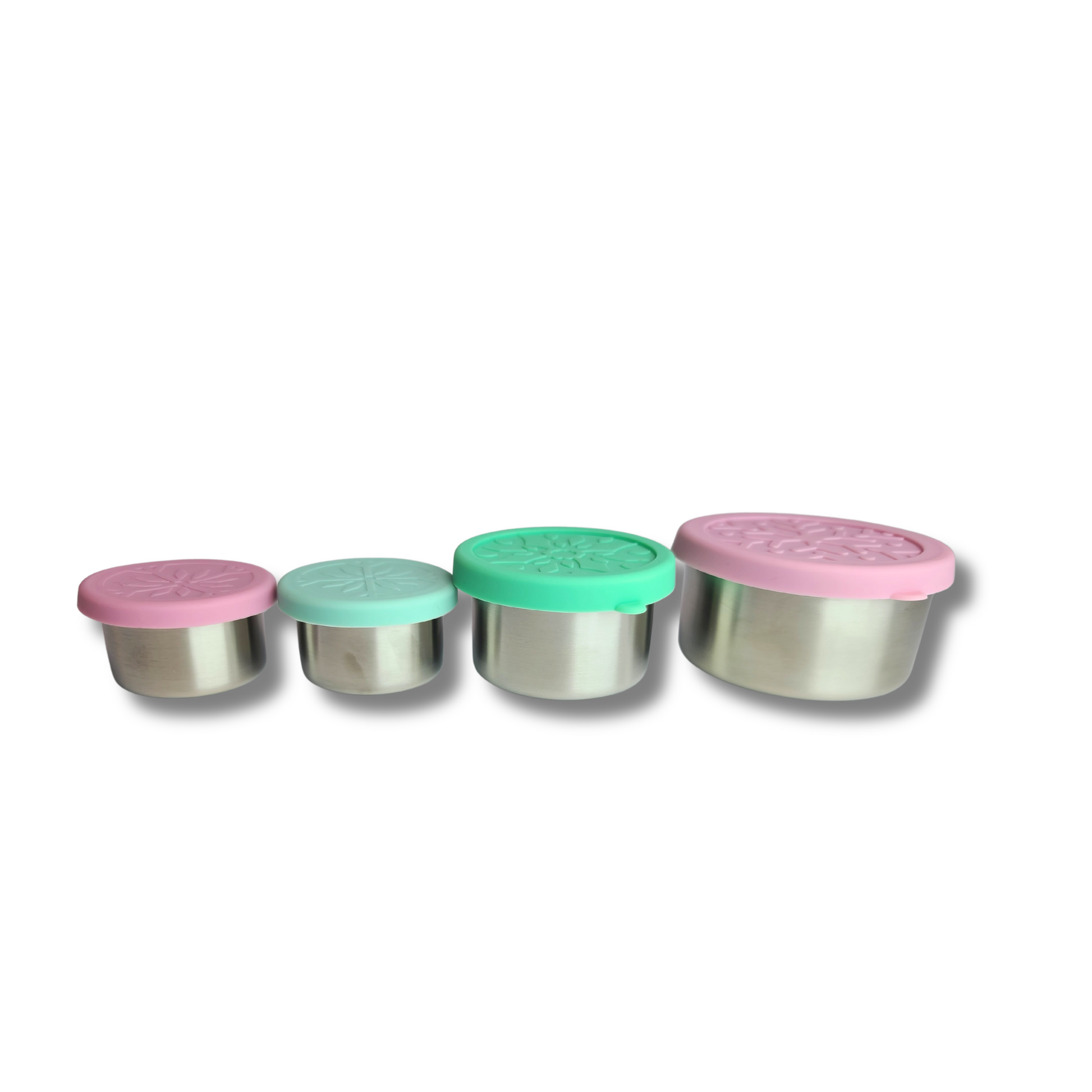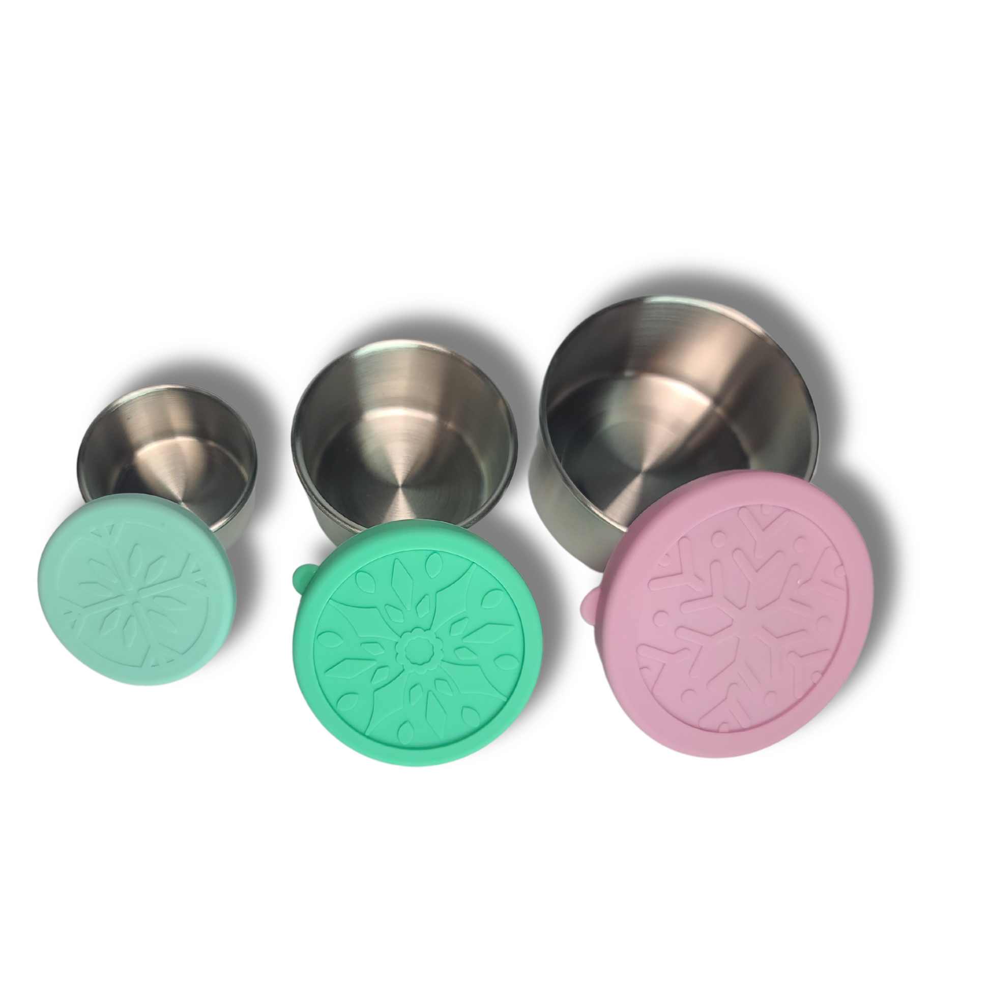 Dip & Go Stainless Steel Snack Pots – 3 Sizes with Leakproof Silicone Lids