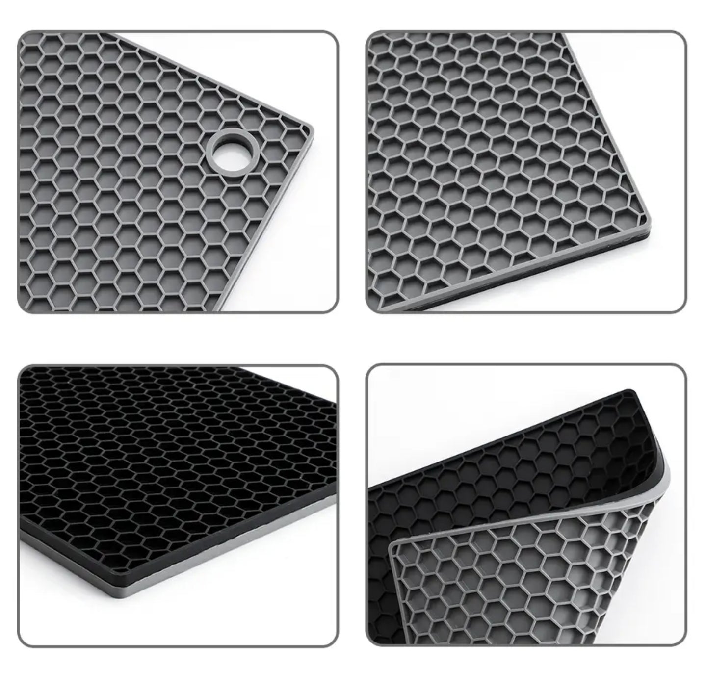 Add versatility and style to your kitchen with our Custom Silicone Trivet Mat. This durable, heat-resistant mat is perfect for protecting your surfaces, holding hot pots, draining dishes, and even serving as a stylish placemat.